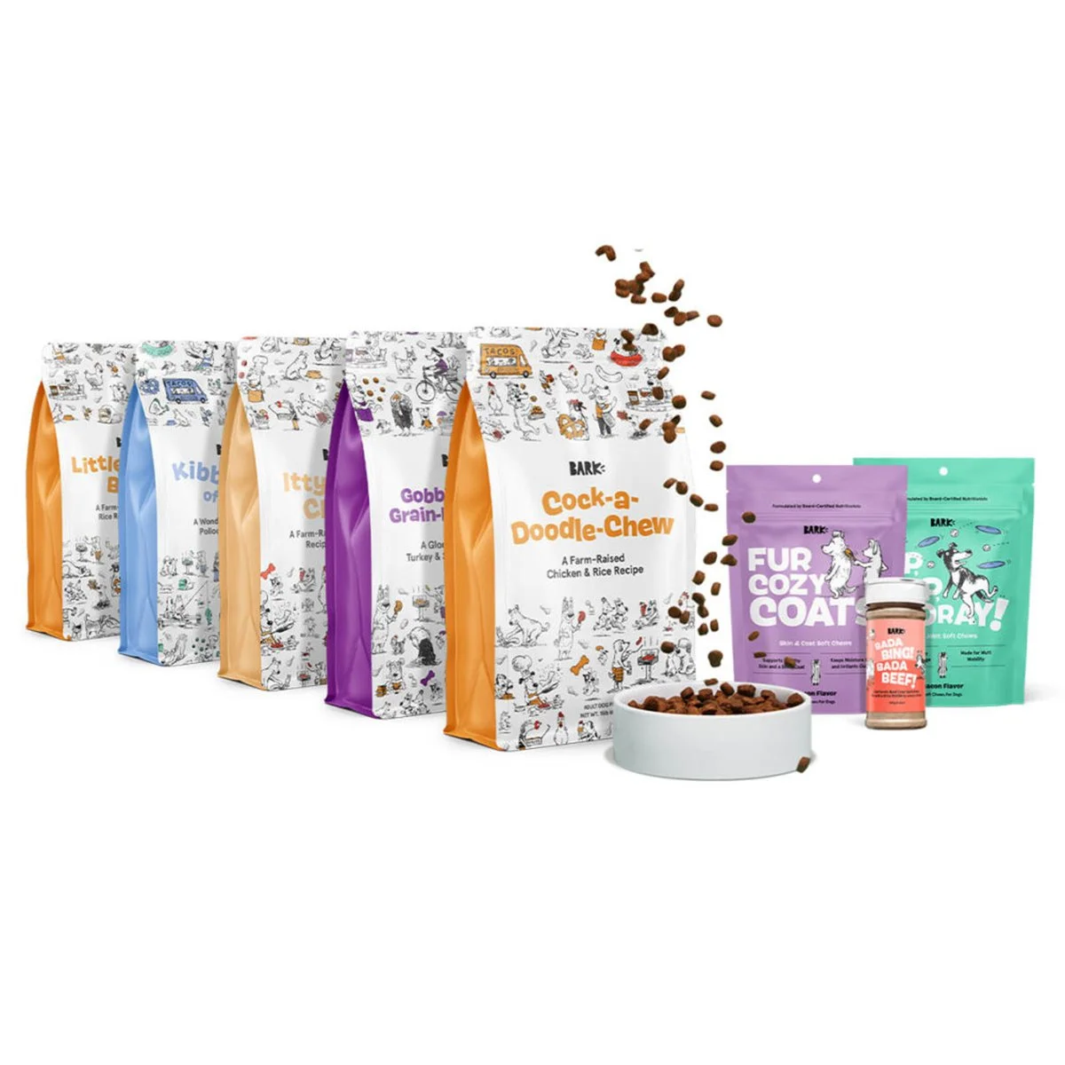 Developed engaging assets for BARK’s toy collections, kibble products, and dental line, including logos, web designs, and packaging. This work featured playful landing pages and emails for BarkBox, alongside packaging highlighting BARK Food’s premium kibble recipes, supplements, and toppers crafted by a board-certified nutritionist. I also designed web and email assets for BARK Bright, promoting monthly dental kits of chews and toothpaste. Each design captured BARK’s distinctive brand voice while enhancing customer engagement and fostering deeper connections with pet owners across the various product lines.