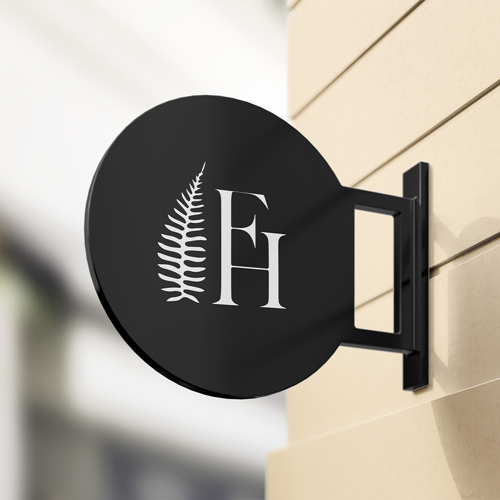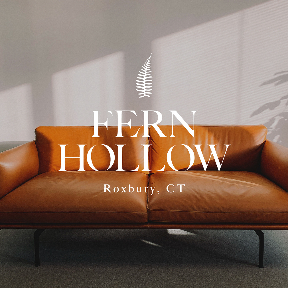 Developed a refined brand identity for a Connecticut-based property, featuring a hollow serif logo complemented by a delicate fern symbol. This all-caps, split-letter design delivers a modern, elegant, and masculine aesthetic that perfectly captures the brand's essence and sophisticated nature.